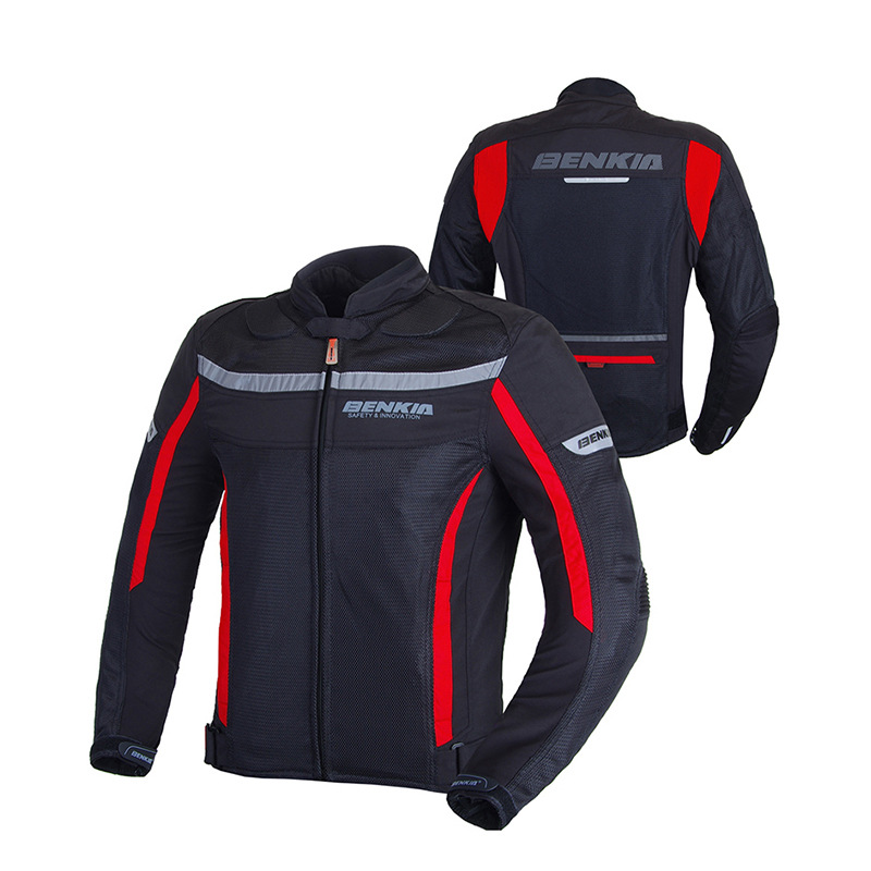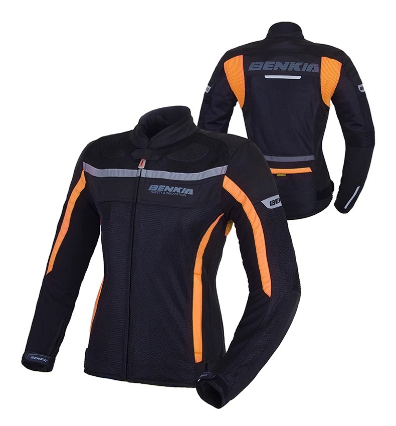 胸部と腕部に配置された大型メッシュパネルが優れた通気性を実現し、暑い季節でも快適な走行をサポートします。