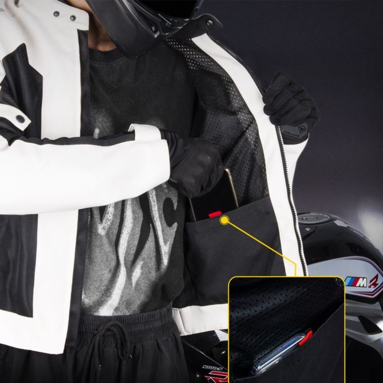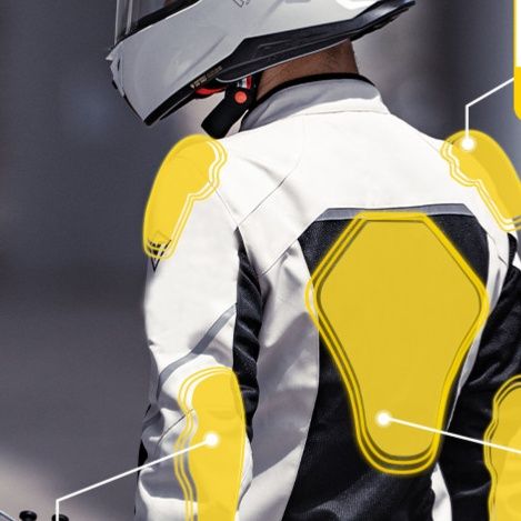 肩、肘、背中に認証取得済みの衝撃吸収パッドを内蔵し、万が一の転倒時にもライダーの身体をしっかり保護します。