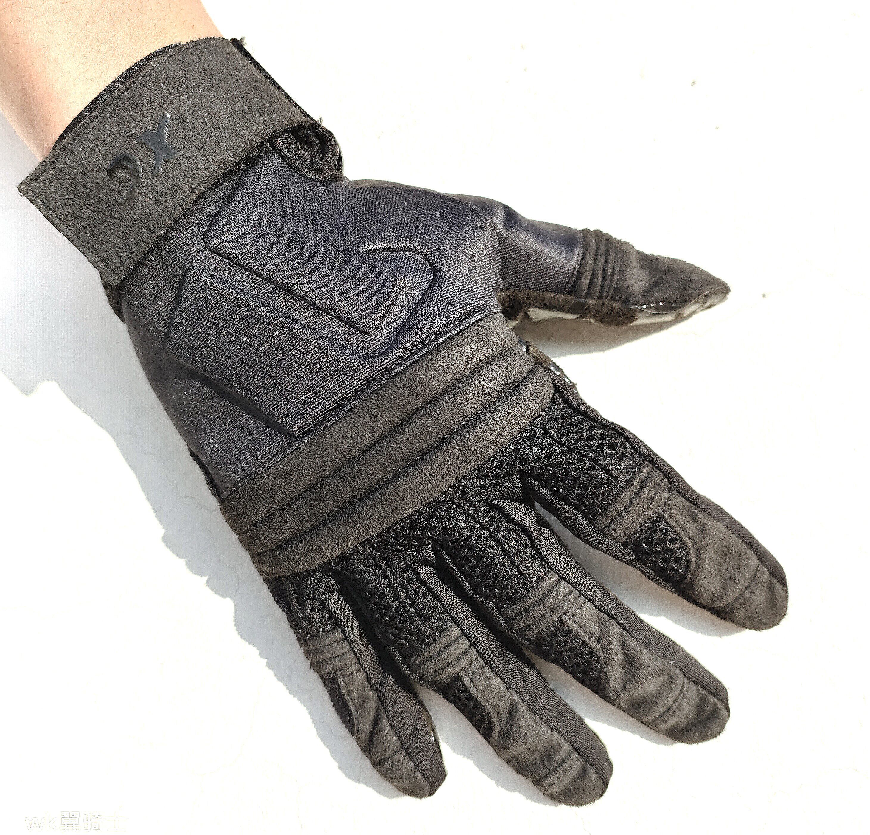 手の甲と指部分には衝撃吸収パッドを配置し、転倒時の安全性を高めています。